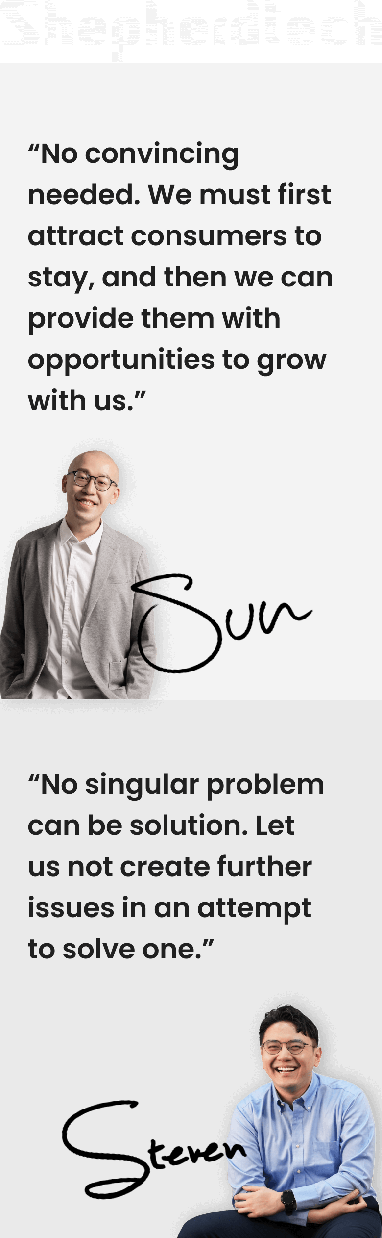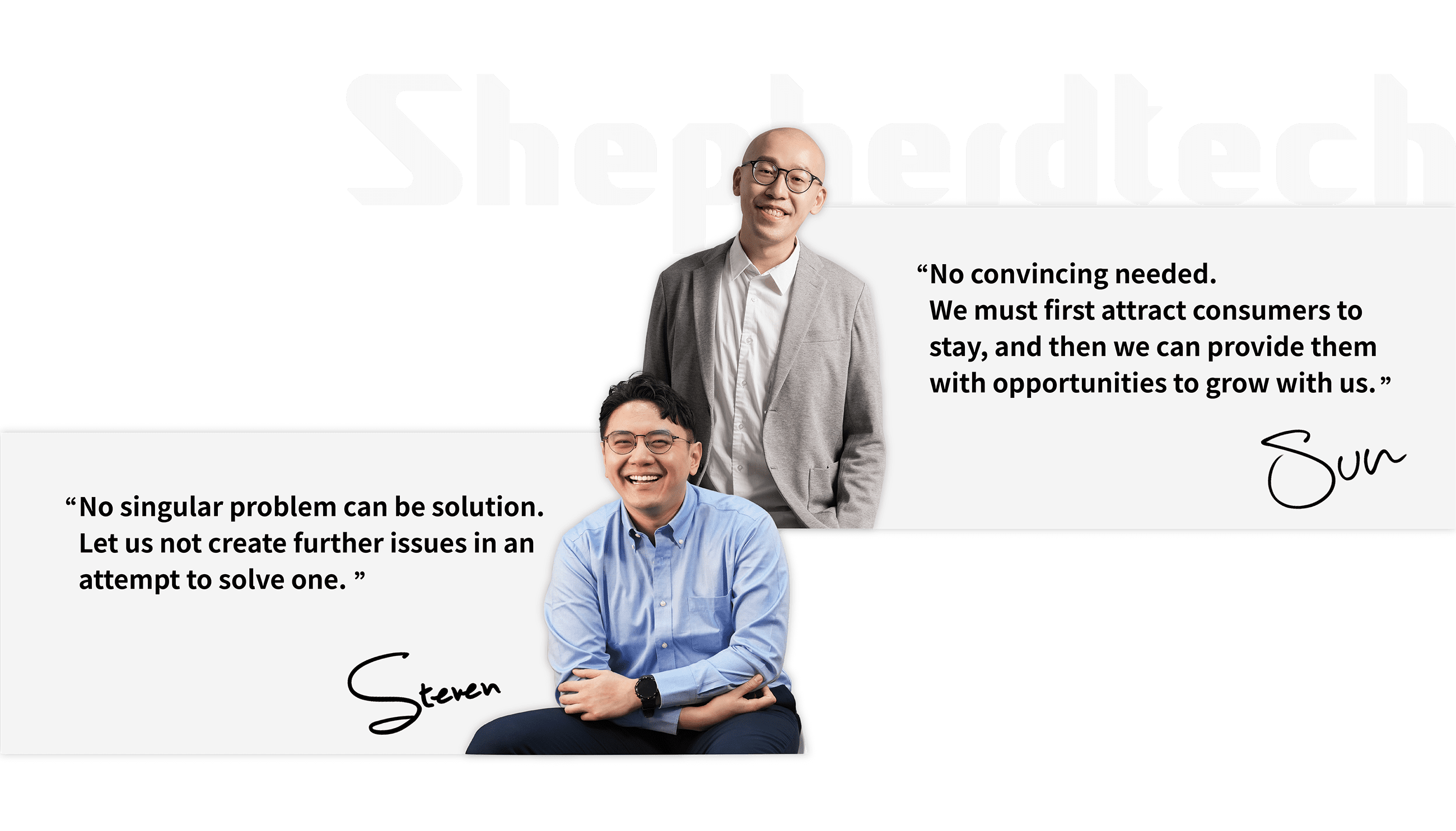 Sun and Steven were introduced to each other and found that they shared a talent for creative problem-solving through innovation. During their collaboration, they discovered significant overlaps between their pet and food supply chains, which led them to work together instead of competing as individuals. This gave birth to the Shepherdtech Group.